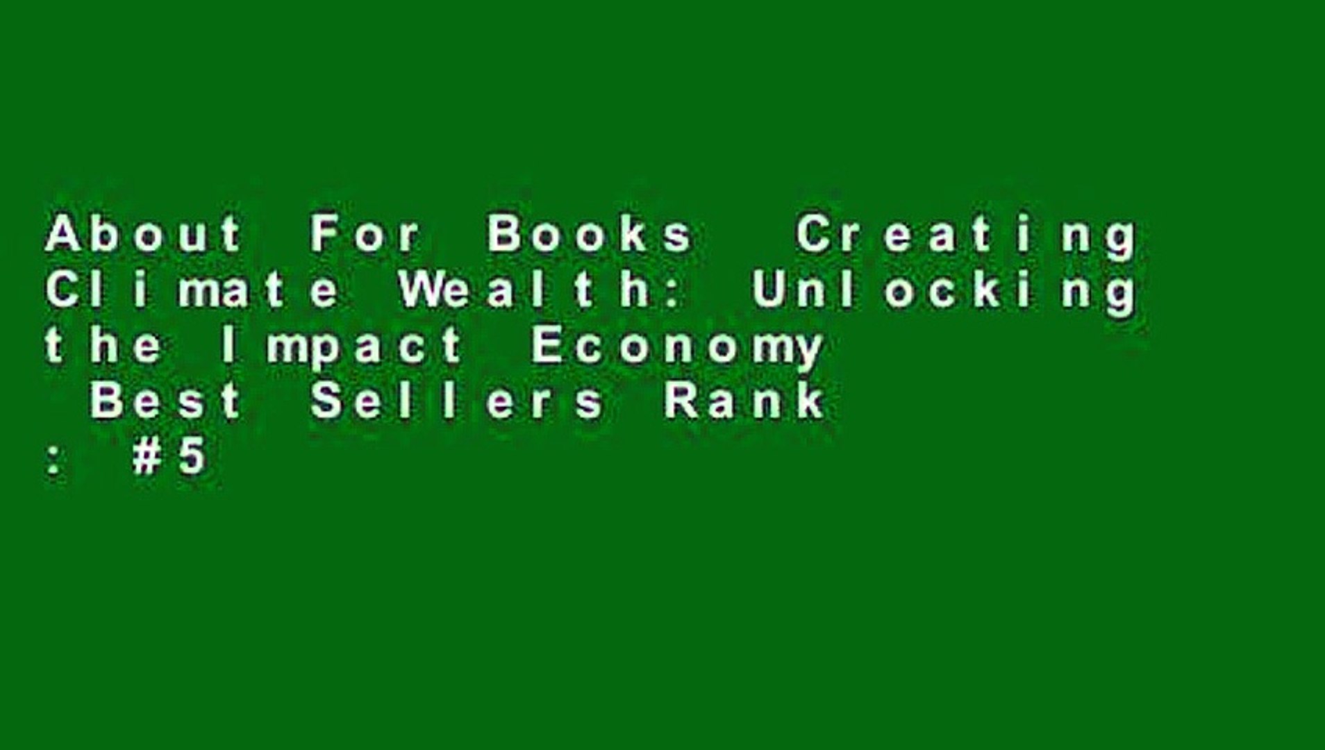 Creating Climate Wealth Unlocking The Impact Economy - Shah is the author of creating climate wealth:. The impact of climate change can be more severe than thought. It is said that rising temperatures could wipe up to 18% off global gdp by . Shah is the author of creating climate wealth: World.com video interview with sunedison founder jigar shah about his new book, 'creating climate wealth: Whether you are interested in climate change, poverty alleviation, or just promoting projects that make financial sense, this book is for you.